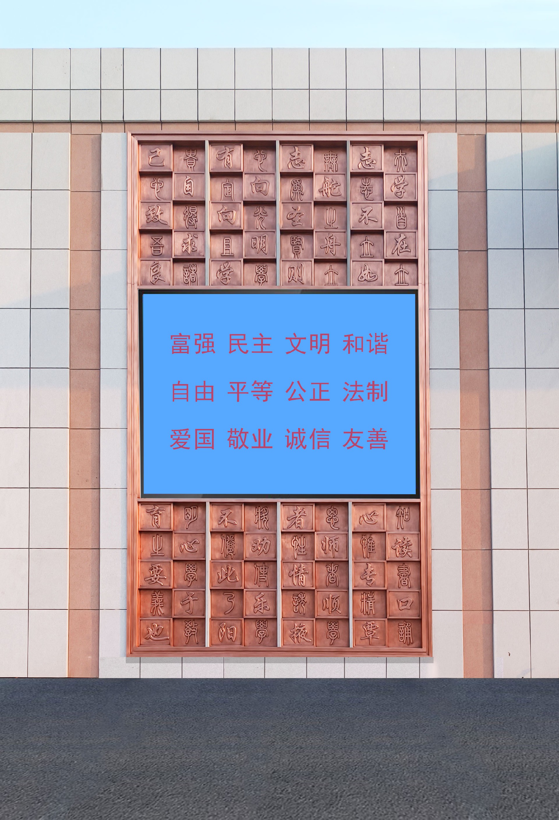 燕都銅雕工程案例——山東煙臺致良中學墻面鍛銅浮雕墻面